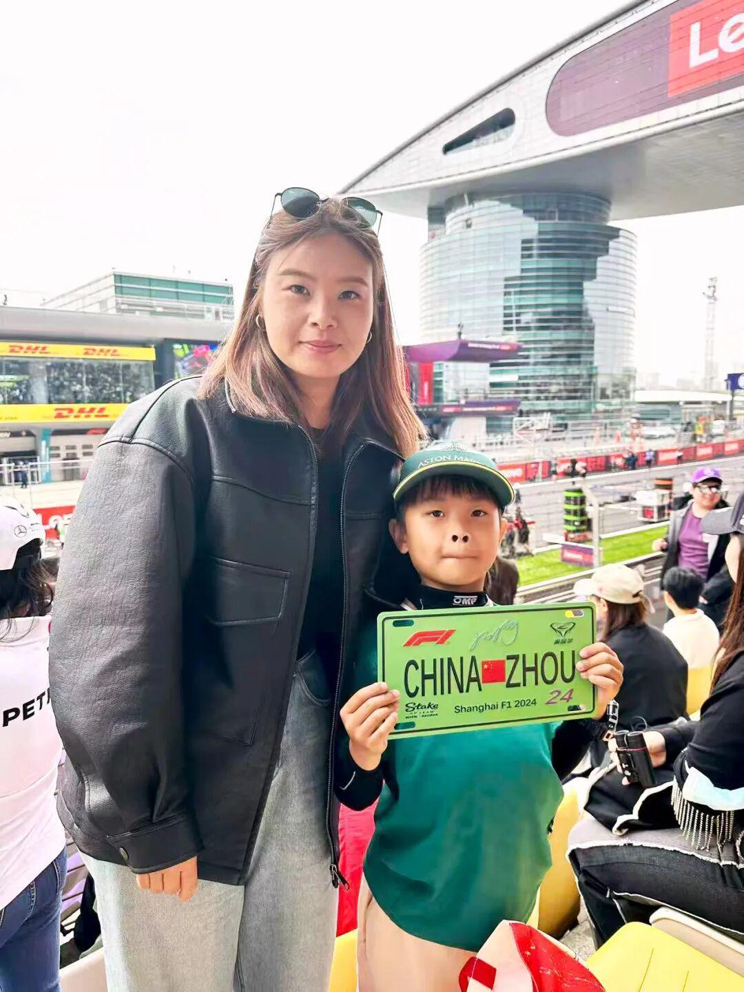 周女士和儿子Eason都是F1车迷。
