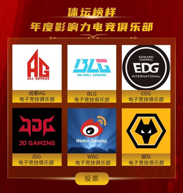 电子竞技和社媒领域的奖项,由大众评委通过投票决定,包括:年度影响力电竞选手、电竞赛事、电竞俱乐部,以及社交媒体最受关注运动员、社交媒体最有影响力体育博主。